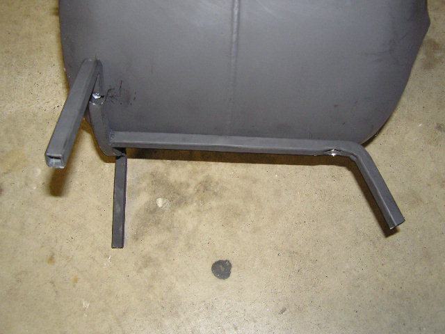 Use only 3 legs. The same front legs as above and one straight down the middle to the back. This eliminates wobble and even the adjustable leg. These legs in the photo are 1/2" square tubing. The front legs are made similar to those in the previous section. The back single leg is cut to fit from the front legs to the back of the forge and the legs portion is started about 2.5 inches from the end of the work. The first ones that I made, I cut long and made some measurements after welding the legs together to make the “platform” level. The front legs and back leg for a “T” with the back leg welded to the center of the front leg.