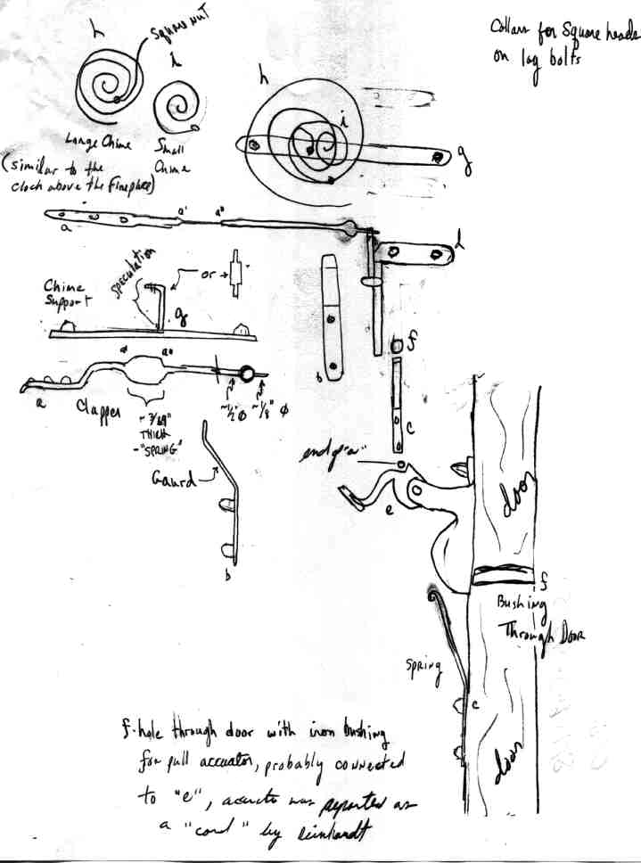 chime_and_lock_side Chime front view Chime side view Chime top view Clapper Front View of the Sear and Chime (spirals) sear7right Sear spring and gaurd Curtain rod end, near front door Top hinge Key - 15" Long. Bottom hinge and steam radiator Bottom latch Bottom latch and hinge Dead bolt Lock section Inside port and main latch Outised Port Hinge and top latch Drawing Legend